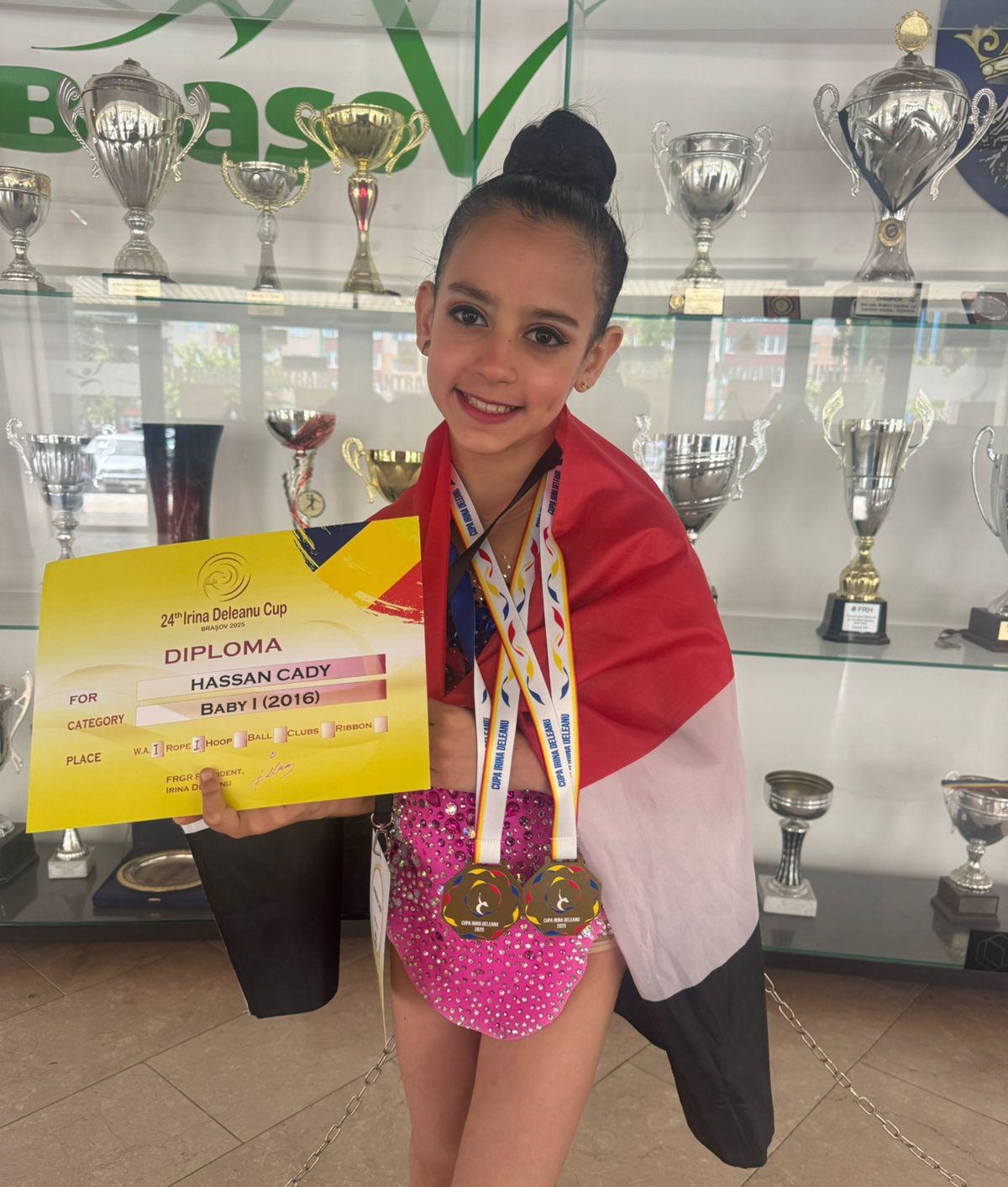 واصلت اللاعبة المصرية الواعدة كادي عمرو، لاعبة نادي وادي دجلة ومواليد 2016، تألقها الدولي بعد أن أحرزت ميداليتين ذهبيتين في منافسات أداة «الحر» و«الحبل» ببطولة «إيرينا ديليانو» الدولية للجمباز الإيقاعي، والتي أُقيمت بمدينة براشوف في رومانيا خلال الفترة من 20 إلى 22 مايو 2025، وسط مشاركة واسعة من لاعبات يمثلن دولًا من مختلف أنحاء العالم.