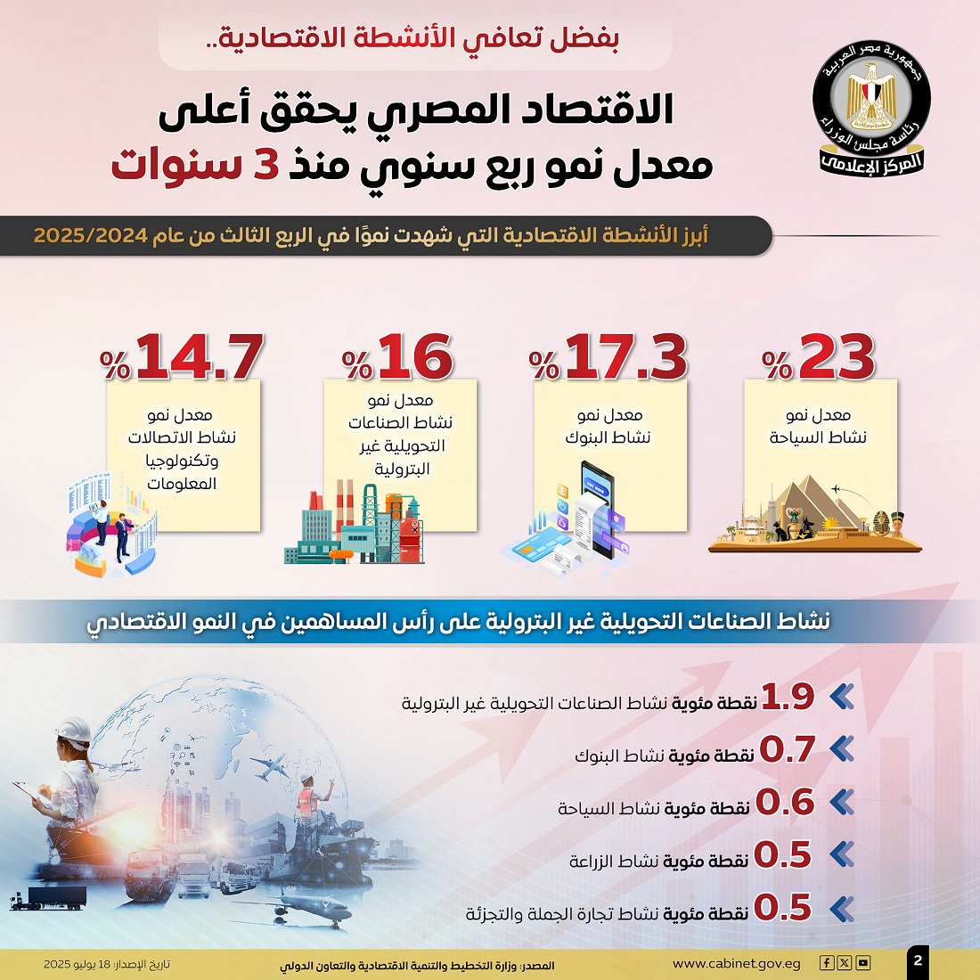 النمو المتحقق يعكس قدرة الاقتصاد المصري على التكيف مع التحديات واستعادة توازنه تدريجيًا رغم الأزمات العالمية وتأثيراتها على أسواق المال والطاقة.