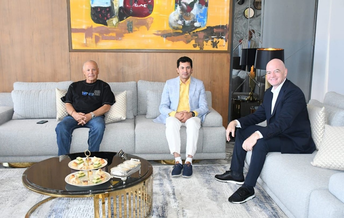 التقى الدكتور أشرف صبحي، وزير الشباب والرياضة، مع جياني إنفانتينو، رئيس الاتحاد الدولي لكرة القدم (فيفا)، وذلك بحضور المهندس هاني أبو ريدة، رئيس الاتحاد المصري لكرة القدم، جاء اللقاء لتعزيز التعاون بين الجانبين وبحث سبل تطوير العلاقة بين مصر وفيفا.