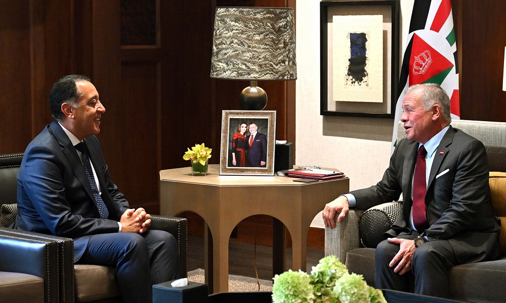 استقبل الملك عبد الله الثاني ابن الحسين، عاهل المملكة الأردنية الهاشمية، اليوم في الديوان الملكي بمنطقة الحسينية، الدكتور مصطفى مدبولي، رئيس مجلس الوزراء المصري، بحضور الأمير الحسين بن عبد الله الثاني، ولي العهد، والدكتور بشر الخصاونة، رئيس الوزراء الأردني.
