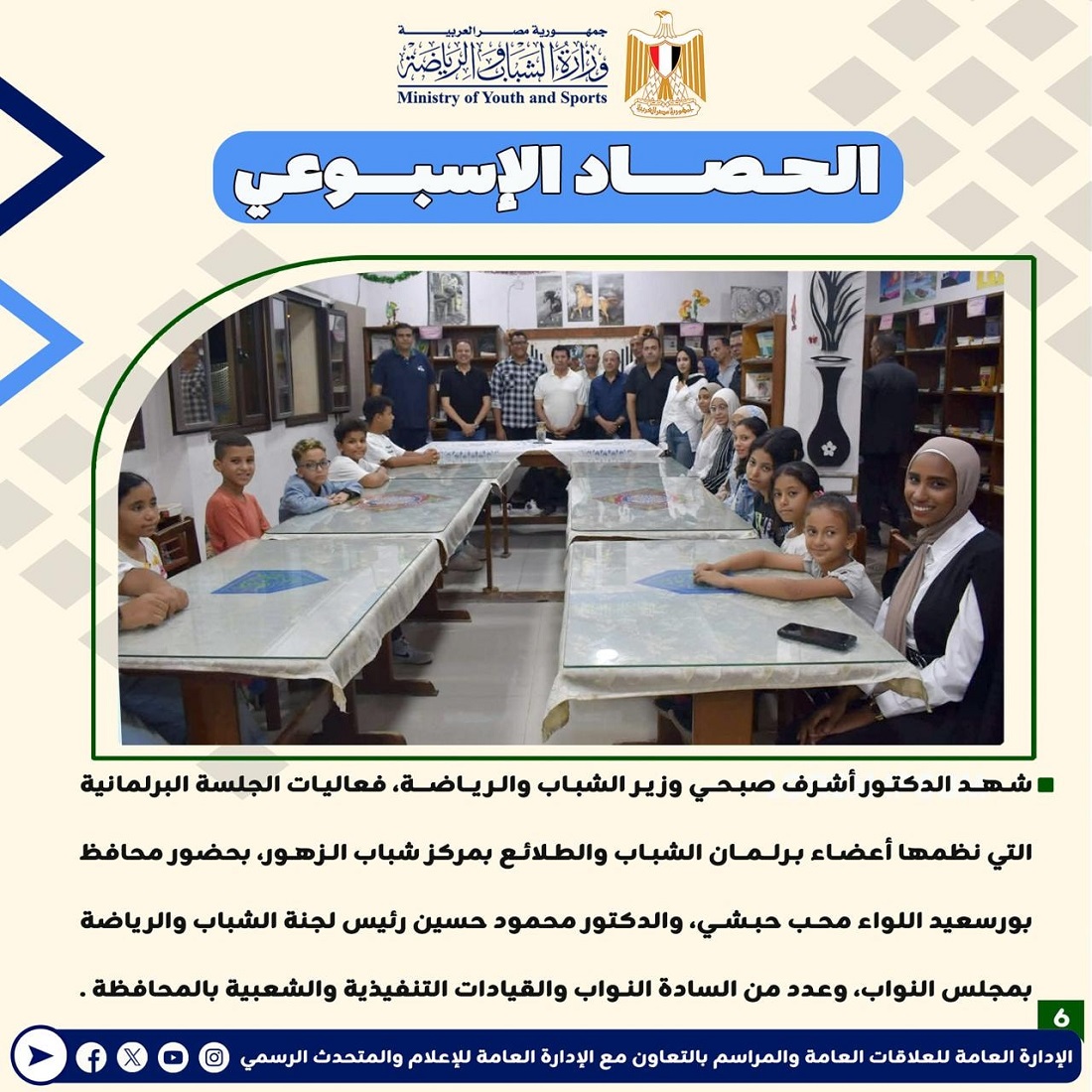 كما أشار التقرير إلى مجموعة المبادرات التي تم إطلاقها خلال هذا الأسبوع بهدف تعزيز المشاركة الفعالة للشباب في الأنشطة الرياضية والثقافية.