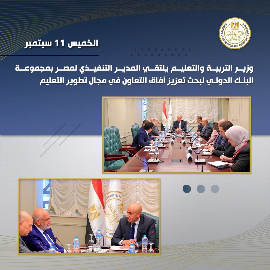 وفي مستهل اللقاء، أكد الوزير محمد عبد اللطيف عمق علاقات التعاون بين وزارة التربية والتعليم ومجموعة البنك الدولي، وحرص الوزارة على البناء على ما تحقق من إنجازات في هذا الإطار.