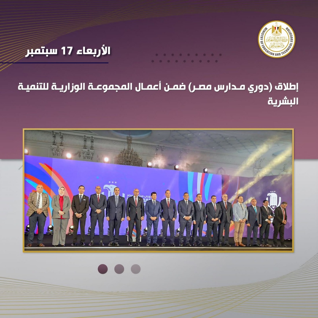 في إطار أعمال المجموعة الوزارية للتنمية البشرية، أطلق الدكتور أشرف صبحي، وزير الشباب والرياضة، و السيد محمد عبد اللطيف، وزير التربية والتعليم، فعاليات دوري مدارس مصر، من خلال الاتحاد المصري للرياضة المدرسية وبالتعاون مع شركة «ستادات».