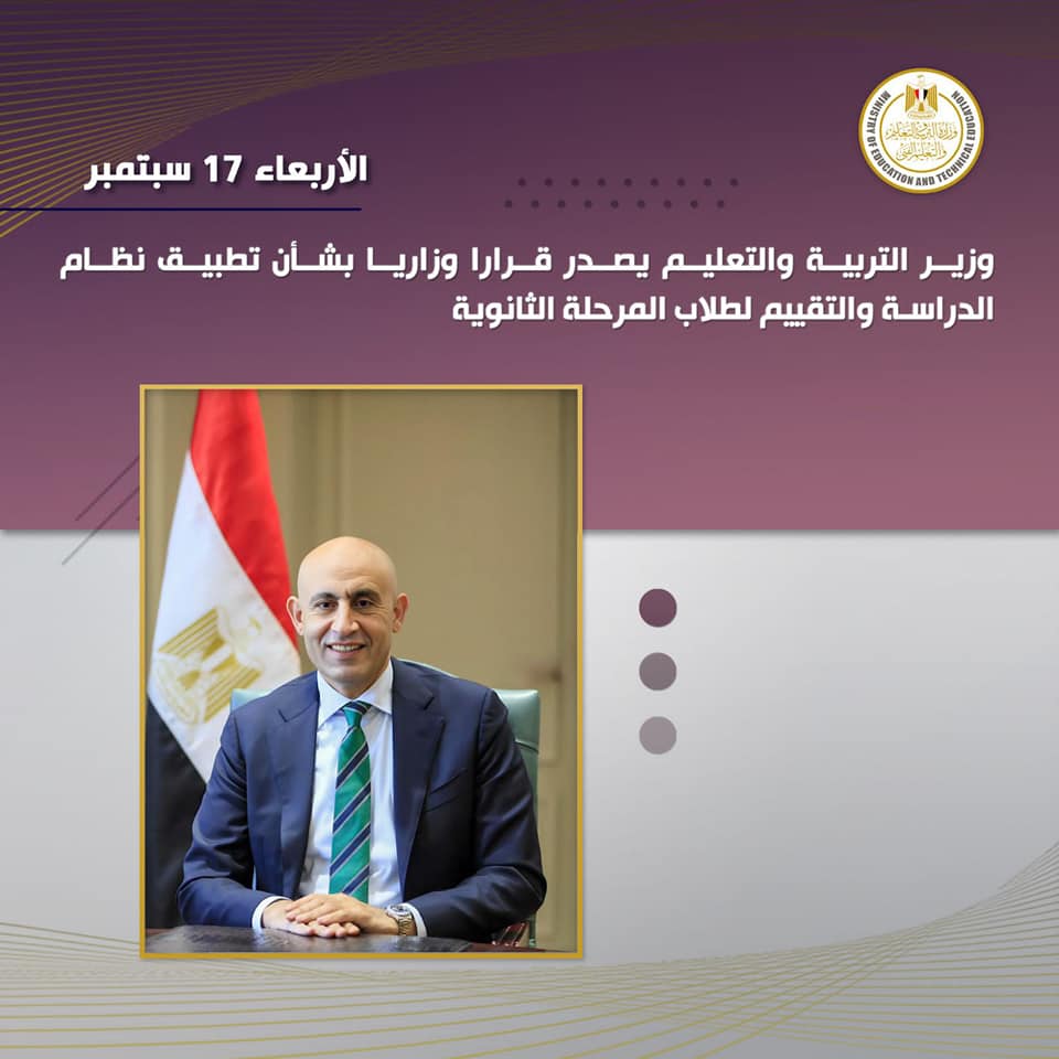 كما نص القرار على أن تدرس كافة المواد الدراسية والأنشطة لطلاب الصفين الأول: (العام – بكالوريا)، والثاني الثانوي العام على مدار العام الدراسى بفصليه الدراسيين (الأول ، والثانى).