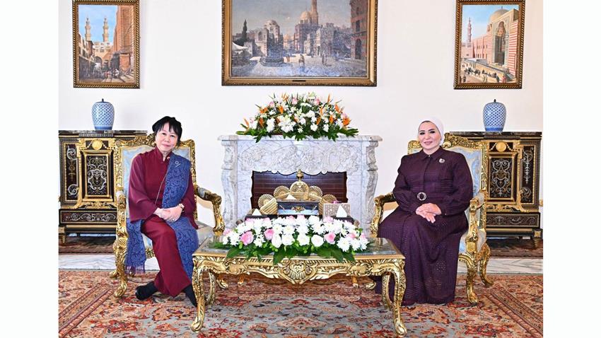 أعربت انتصار السيسي قرينة الرئيس عبد الفتاح السيسي، عن سعادتي باستقبال السيدة الجليلة جين يوميكو أتوغي، حرم رئيس جمهورية سنغافورة، في مصر التي نعتبرها بلدها الثاني.
