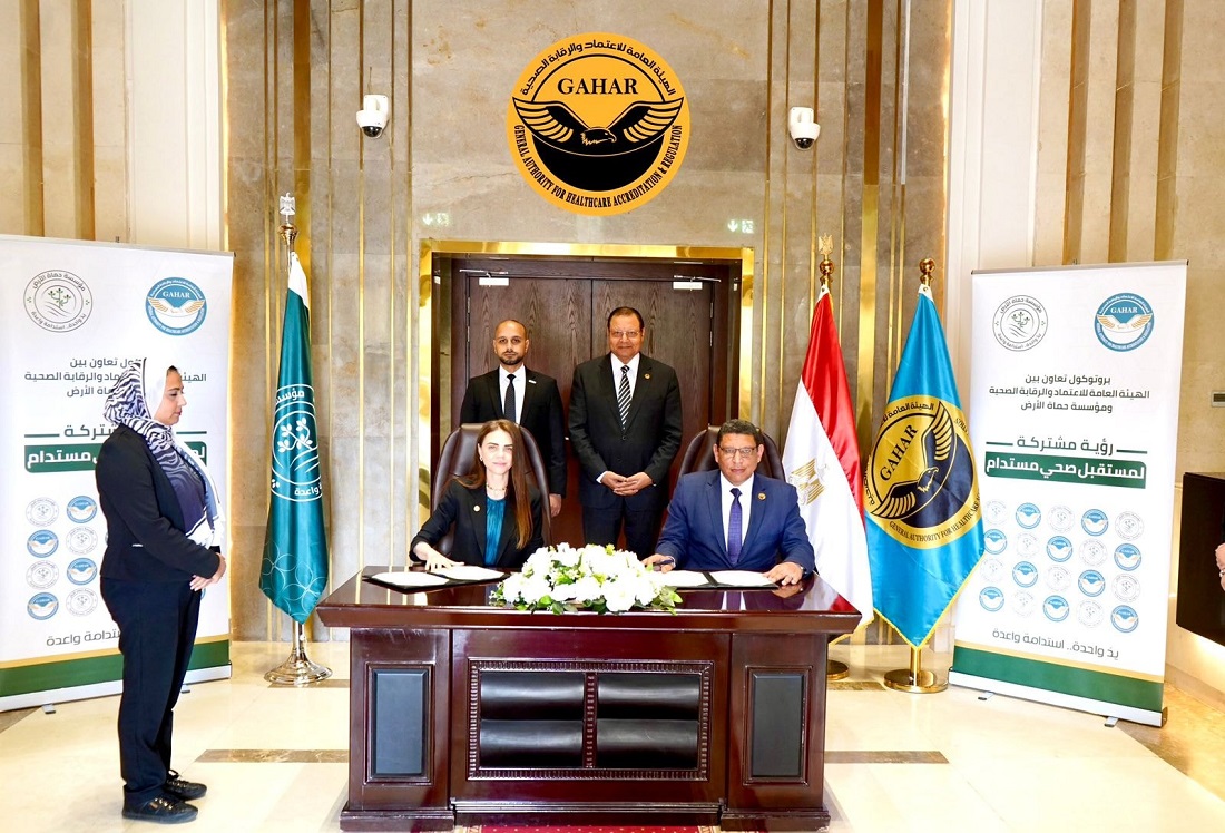 تم توقيع البروتوكول بين الدكتور محمد السايس، المدير التنفيذي للهيئة العامة للاعتماد والرقابة الصحية، والدكتورة ريهام فاروق، الأمين العام لمؤسسة حماة الأرض، بحضور نخبة من المسؤولين والمؤسسات المعنية.