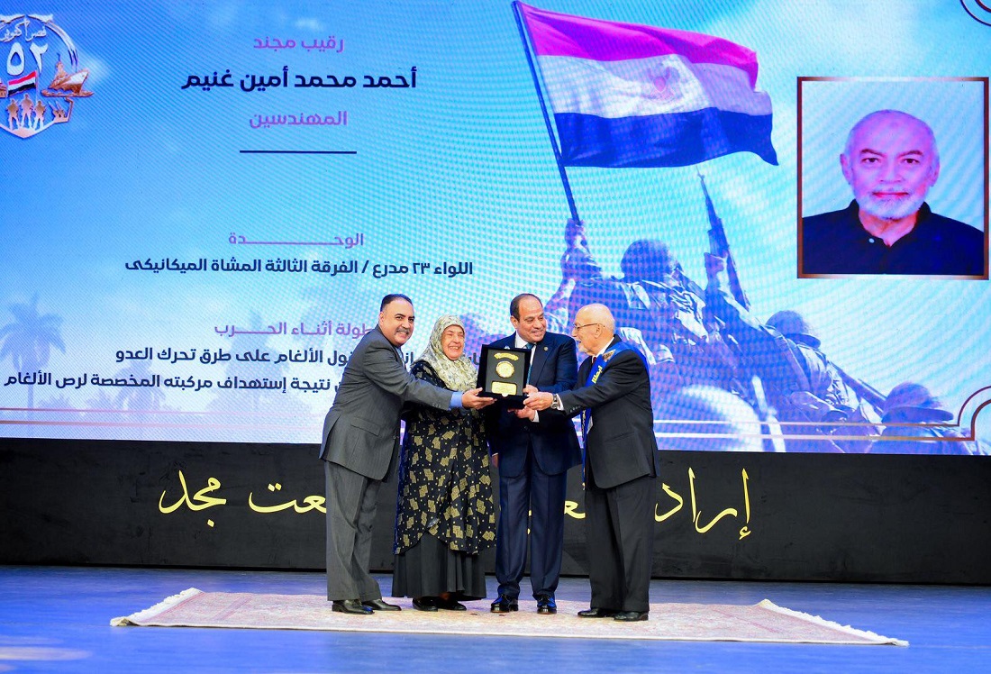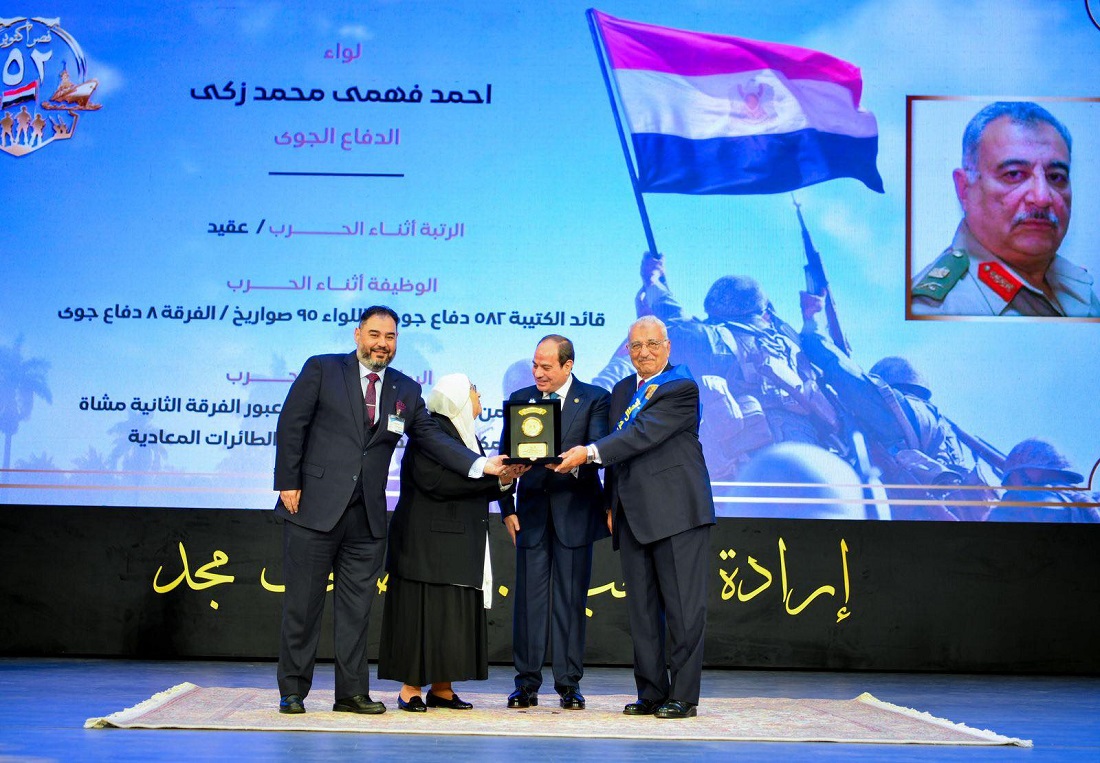 كرّم الرئيس السيسي أحد عشر من أبطال حرب أكتوبر المجيدة في سياق تقدير تضحياتهم وجهودهم، وفي كلمته التي ألقاها بالمناسبة، استعرض الرئيس إنجازات مصر خلال شهر أكتوبر عبر العقود المختلفة، وأشار إلى أن نصر أكتوبر عام 1973 شكَّل لحظة فارقة في استعادة الوطن لكرامته وسيادته.