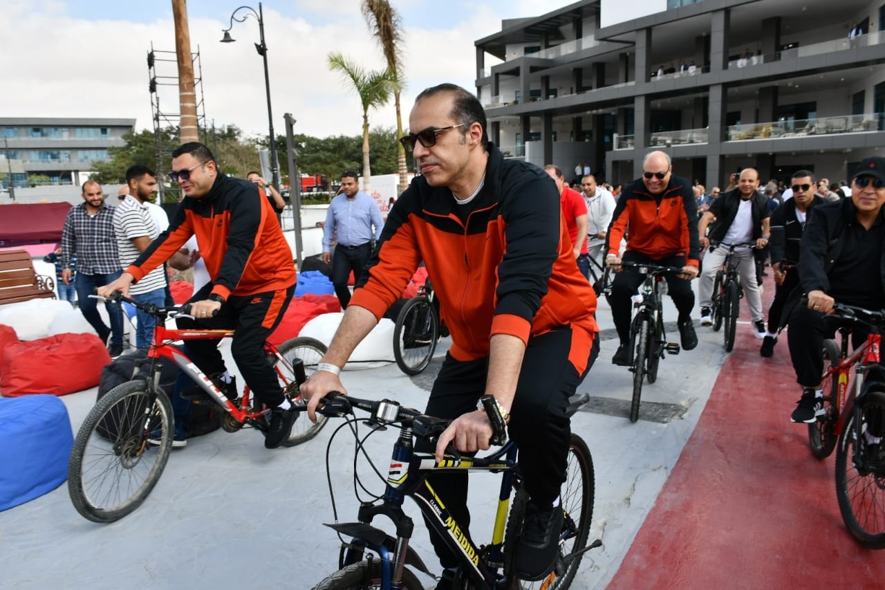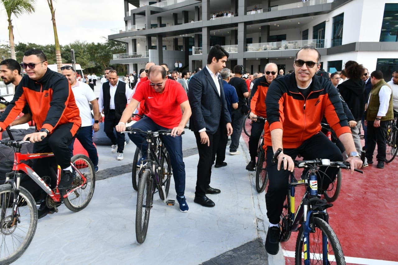 أجرى السادة الوزراء جولة بالدراجات داخل النادي الذي بُني وفق أحدث المعايير الإنشائية ويجمع بين المنشآت الرياضية والخدمية والاجتماعية. يضم النادي ملاعب كرة القدم الخماسية والتنس والاسكواش، ومجمع حمامات السباحة، وصالة رياضية (جيمانيزيوم)، ومرافق اجتماعية تشمل المبنى الاجتماعي والمطاعم والكافيتريات، ليقدم نموذجًا شاملًا للأندية الحديثة التي تقدم خدمات متكاملة لجميع الفئات العمرية. واختُتمت الجولة بمباراة كرة قدم بين الوزراء.