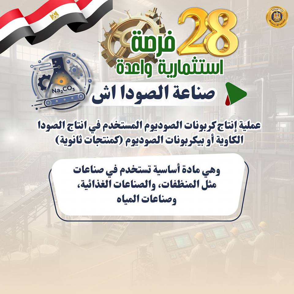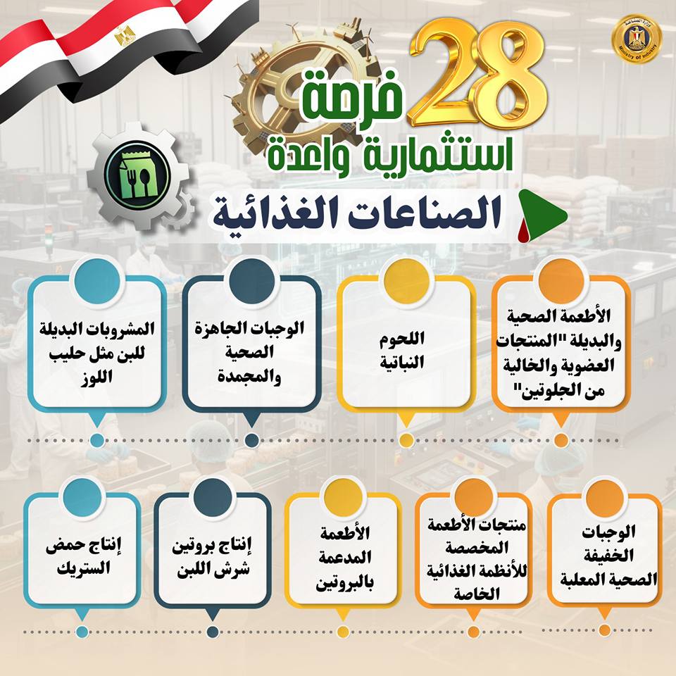 حددت وزارة الصناعة 28 صناعة وفرصة استثمارية واعدة ومستهدفة لجذب استثمارات بها بهدف تلبية احتياجات السوق، وتقليل فاتورة الواردات، وتدعو الوزارة المستثمرين الجادين لضخ استثمارات جديدة أو التوسع في هذه الصناعات الواعدة والمستهدفة التي توليها الوزارة اهتماماً بالغاً.