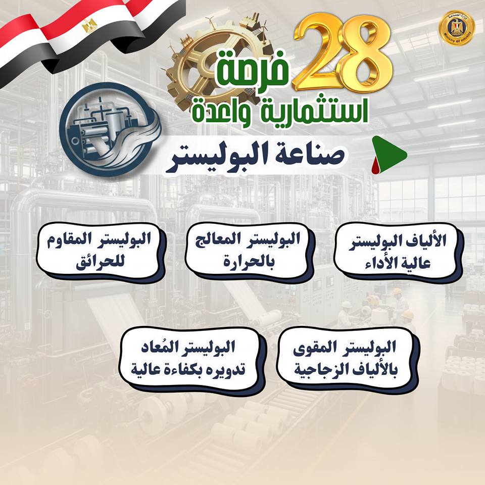 12- صناعة البوليستر (الألياف البوليستر عالية الأداء- البوليستر المعالج بالحرارة- البوليستر المقاوم للحرائق- البوليستر المقوى بالألياف الزجاجية- البوليستر المُعاد تدويره بكفاءة عالية).