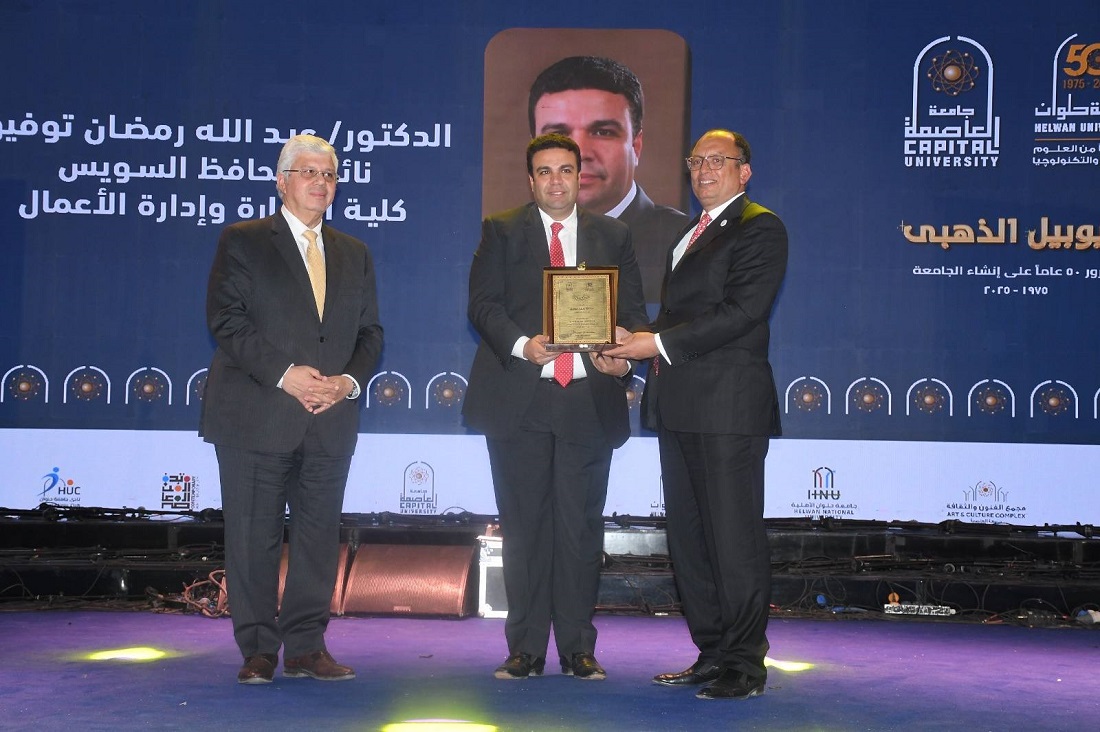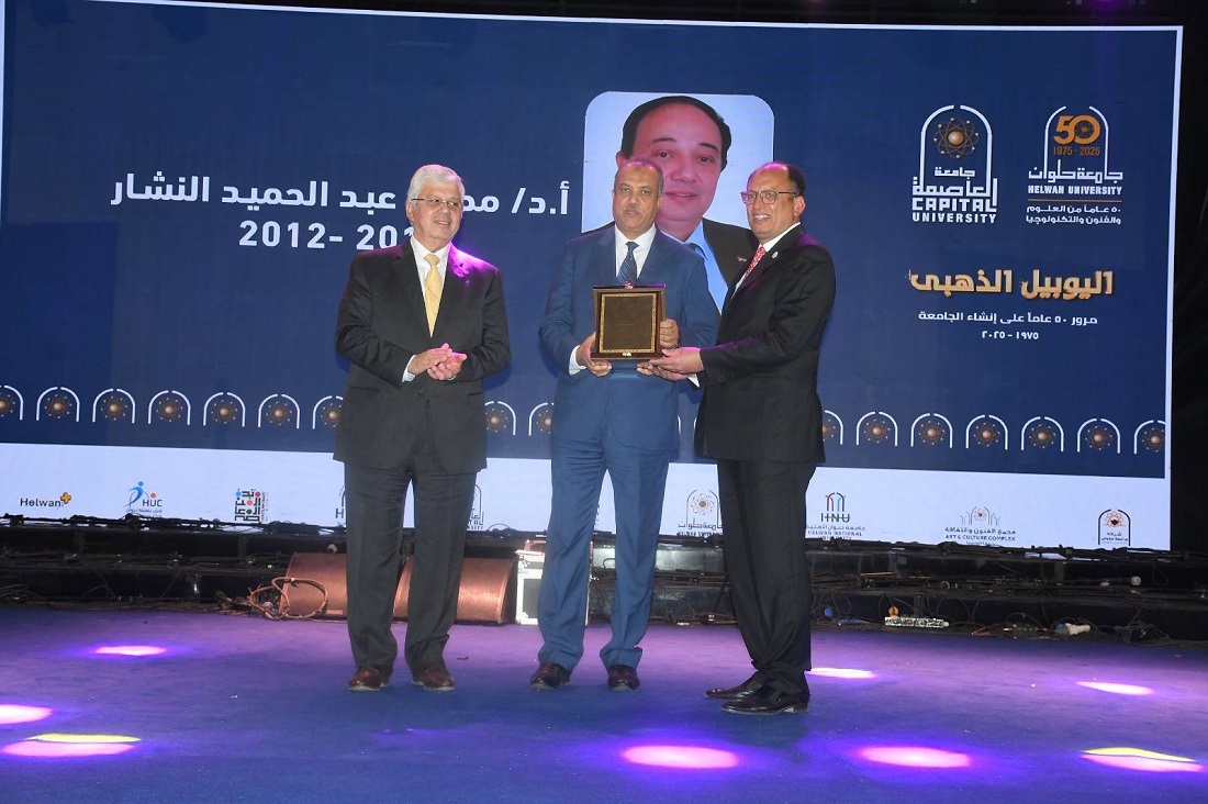 وأشار د.السيد قنديل إلى أن جامعة العاصمة تمثل اليوم نموذجًا يجمع بين الفنون والعلوم والابتكار، وتنفذ مشروعات إستراتيجية كبرى لخدمة المجتمع، منها إنشاء مجمع طبي ضخم بسعة 1600 سرير، وإنشاء جامعة حلوان الأهلية، وإطلاق شركة الجامعة لدعم الخدمات التعليمية، والتوسع في مجمع الفنون والثقافة ونادي الجامعة، وخطة لإنشاء حرم جامعي جديد بحدائق العاصمة، يخدم العاصمة الجديدة، والتوسع في برامج دولية جديدة بالشراكة جامعة عالمية، وإنشاء كليتي الزراعة والطب البيطري لتلبية احتياجات المجتمع، مؤكدًا أن اليوبيل الذهبي يمثل انطلاقة جديدة نحو مستقبل أكثر ريادة وتميزًا.