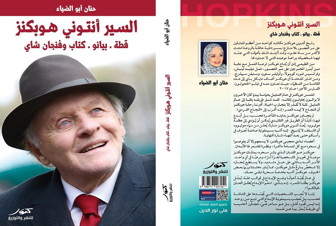 أنتوني هوبكنز .. حياته الخاصة و أبداعاته المختلفة تتناولها الكاتبة حنان أبو الضياء فى كتابها عنه :(السير أنتوني هوبكنز قطة- بيانو- كتاب- وفنجان الشاي). الكتاب يشارك في معرض القاهرة الدولي للكتاب