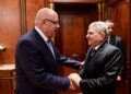 افتتح الفريق أسامة ربيع اللقاء بتقديم التهنئة للمستشار هشام بدوي بمناسبة توليه مهامه الجديدة كرئيس لمجلس النواب.