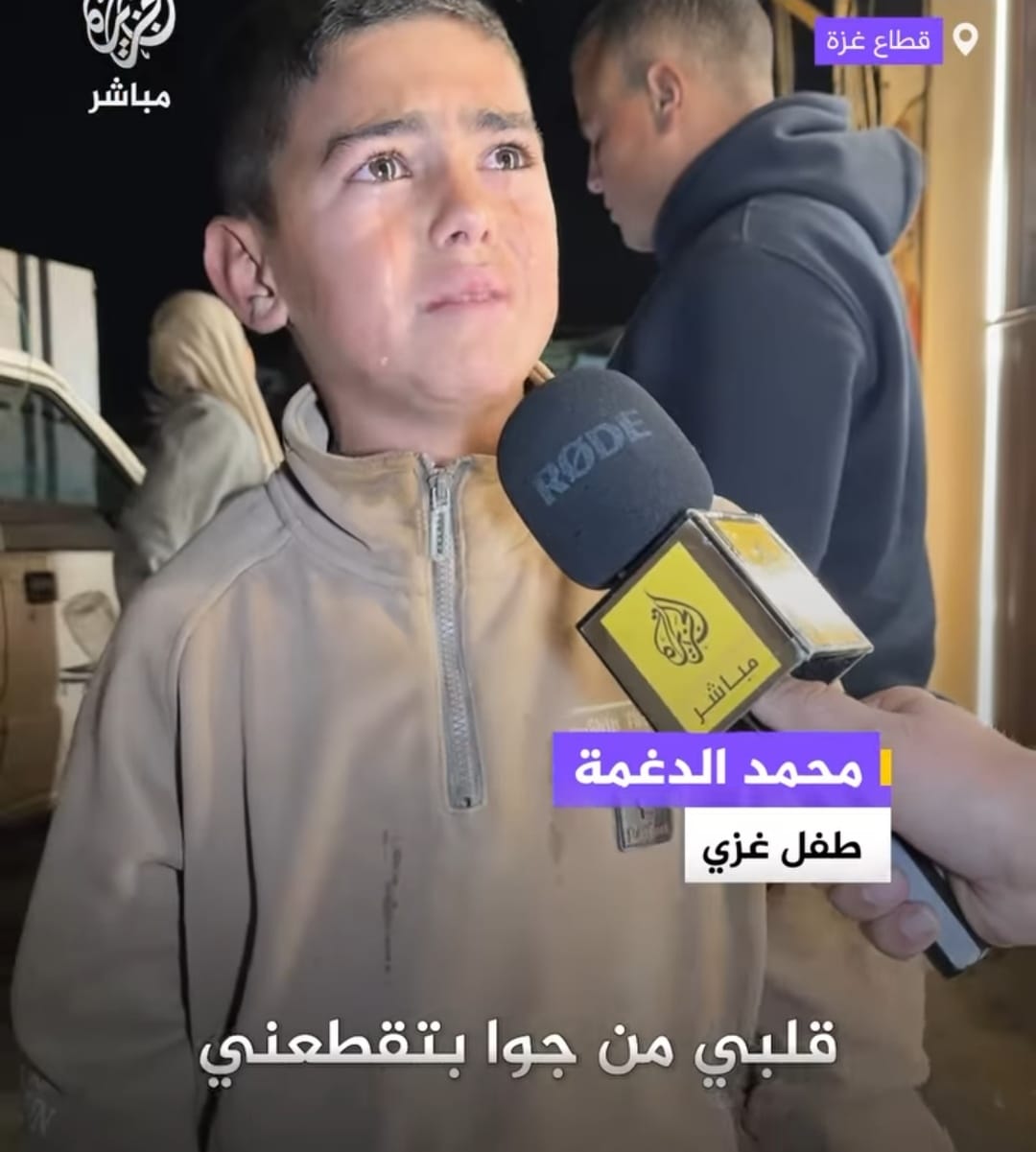 الطفل محمد الدغمة، طفل غزّي يحمل في عينيه ألم فقدانه لكل أفراد عائلته دفعة واحدة، وهو يجسد مرارة واقع عاشه في غزة.