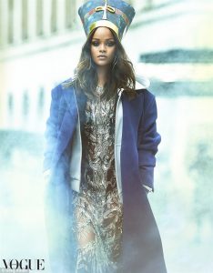 ظهرت النجمة الامريكية «ريهانا» في أحدث جلسة تصوير لها مع المصور «جريج كاديل» لصالح مجلة Vogue بالعربى، بإطلالة مستوحاة من الملكة نفرتيتى.