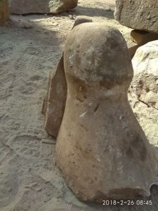 من جانبه أوضح محمد عبد البديع رئيس الإدارة المركزية لمصر العليا، أن هذا الجزء من التمثال يمثل الملك في الهيئة الأوزورية حيث تظهر اليدان متقاطعتان على الصدر وتمسكان بعلامة العنخ، كما يظهر جزء من الذقن الملكية، وهو لايزال يحتفظ ببقايا للالوان خاصة على اليدين، وتبلغ أبعاده 90 x140 سم بارتفاع يبلغ 75 سم، ومن المرجح أن ارتفاع التمثال كاملا يصل إلي ما يزيد عن سبعة أمتار، وهو يشبه الي حد كبير التماثيل الملكية بمعبد الرمسيوم بالبر الغربي بالأقصر.