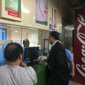 وتوجه وزير النقل إلى شبابيك التذاكر، واستفسر من الصرافين عن كثافة الركاب؛ حيث أكد الصرافون أن العدد هو المعتاد في مثل هذا التوقيت من كل يوم.