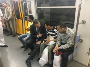 ووجه وزير النقل، بتقديم كافة التسهيلات للركاب على مدار الساعة، والتقى بعدد من الركاب، ودار حوار حول تغيير تعريفة تذاكر المترو، موضحًا أنها كانت ضرورية بسبب خسائر شركة المترو، والتي تقدر بـ٦١٨ مليون جنيه حتى 30/6/2017، إضافة إلى وجود عجز في مصاريف الصيانة والعمرات والتجديدات للعامين الماليين ٢٠١٦/٢٠١٧ و٢٠١٧/٢٠١٨ يبلغ ٩٤% ، وضرورة استكمال خطط التطوير للخطين الأول والثاني، وتطوير وتحديث أنظمة المترو للحفاظ على هذا المرفق الحيوي الذي يخدم ملايين المصريين يومياً .