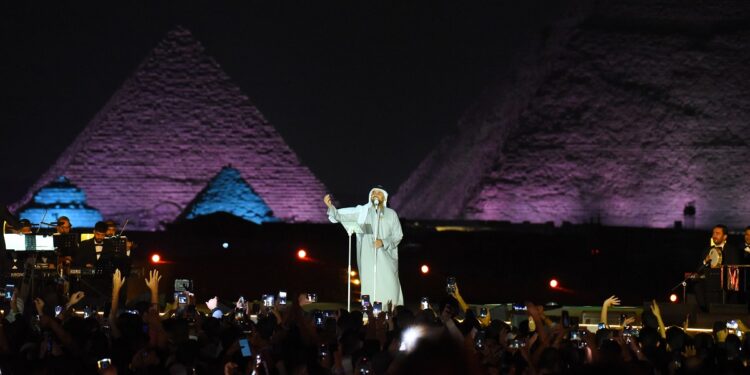 وحملت الحفلة الغنائية تحت سفح الأهرامات، شعارات المحبة والأخوة من جميع الجوانب، وشارك في أحيائها الفنان المصري عمرو دياب.